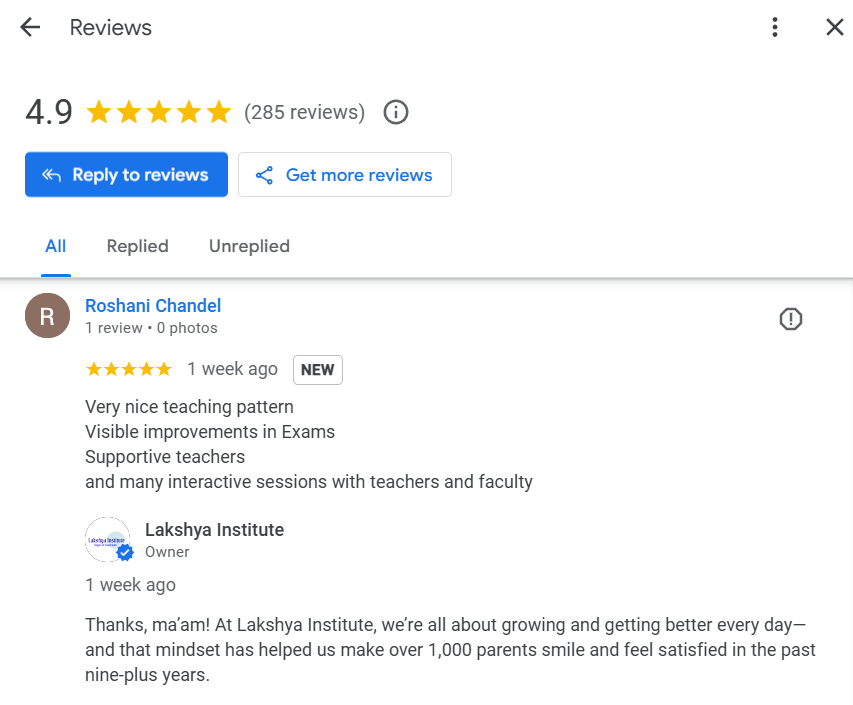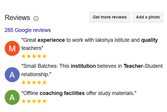 No one can give you better insight into Lakshya than the people who are the valuable assets of Lakshya Institute. Let’s hear out what our students and their parents have to say.For more reviews Please visit Lakshya Google Business Page