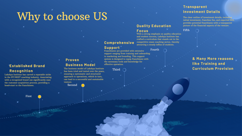 - Willingness to invest time and effort: Running an educational institute demands time and dedication. A franchisee must be willing to invest the necessary time and effort to ensure the success and growth of the franchise, adhering to the standards set by Lakshya Institute.